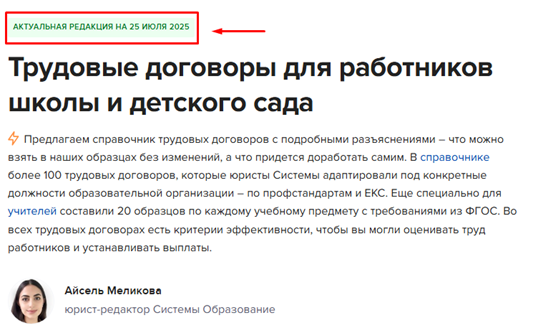 Зеленая плашка с текущей датой — все материалы проверены и соответствуют последним изменениям законодательства. Можете использовать без дополнительных проверок.