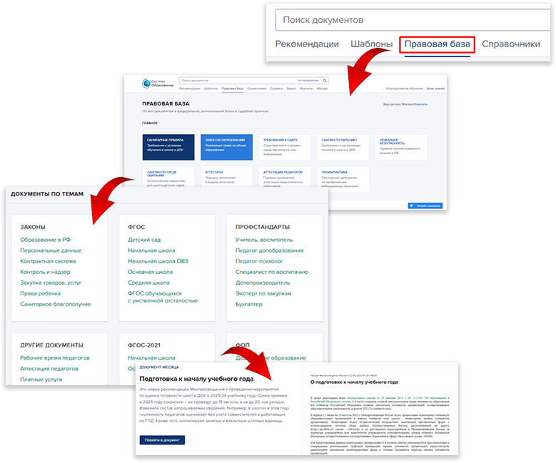 Все нормативные документы — законы, методрекомендации, письма, постановления, включая региональные